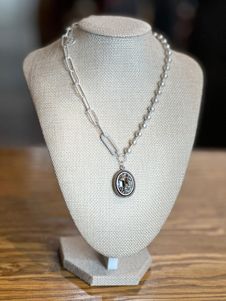 Pink Panache Frost Paperclip/Pearl Necklace