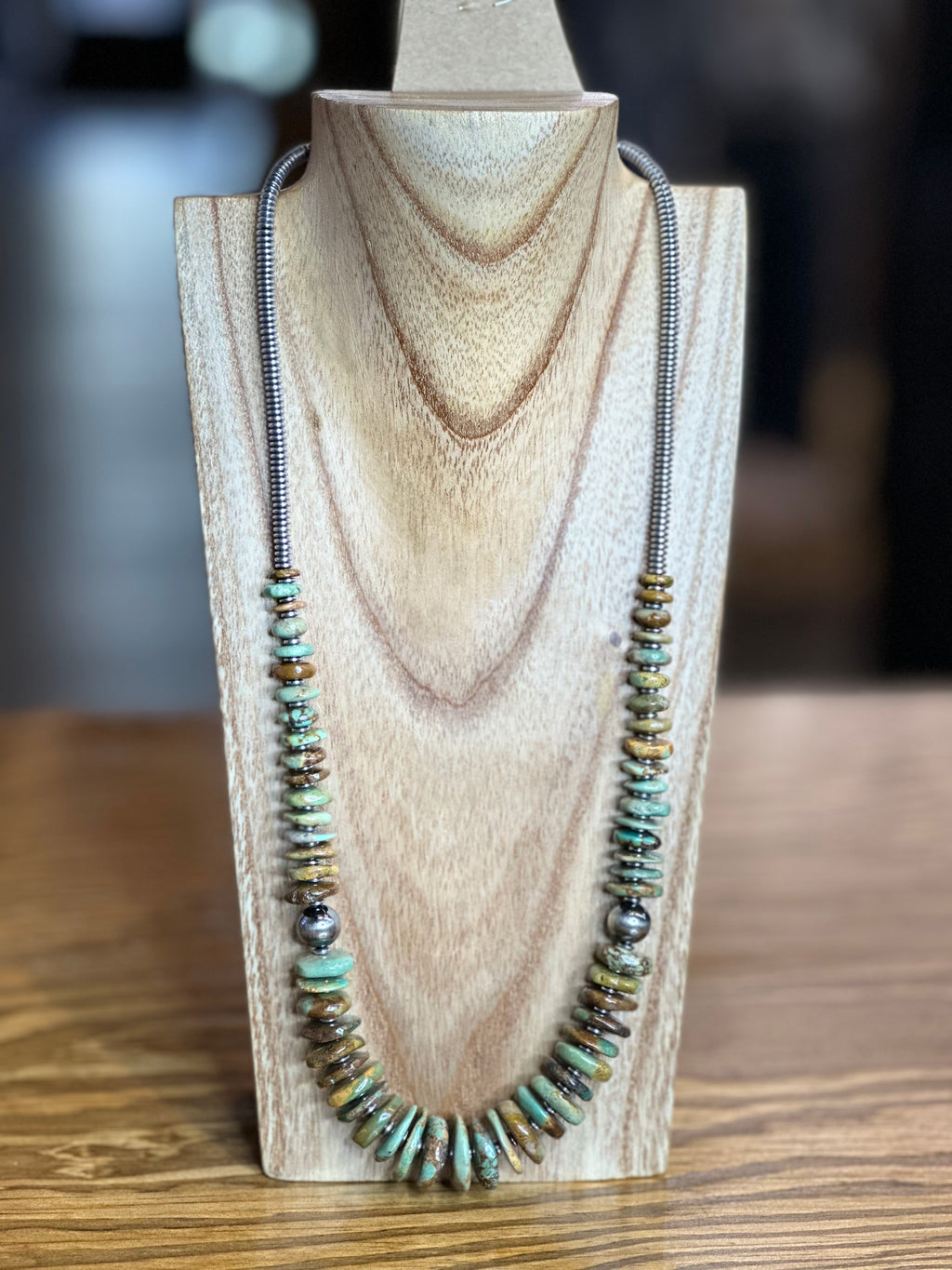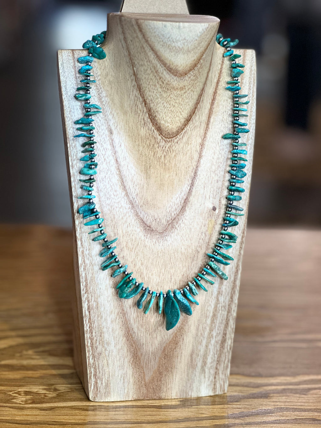 22 inch graduated turquoise necklace with Sterling silver pearls