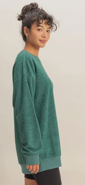Perfect for layering over tees or under jackets, this top pairs well with denim or leggings for a laid-back, fashionable ensemble.